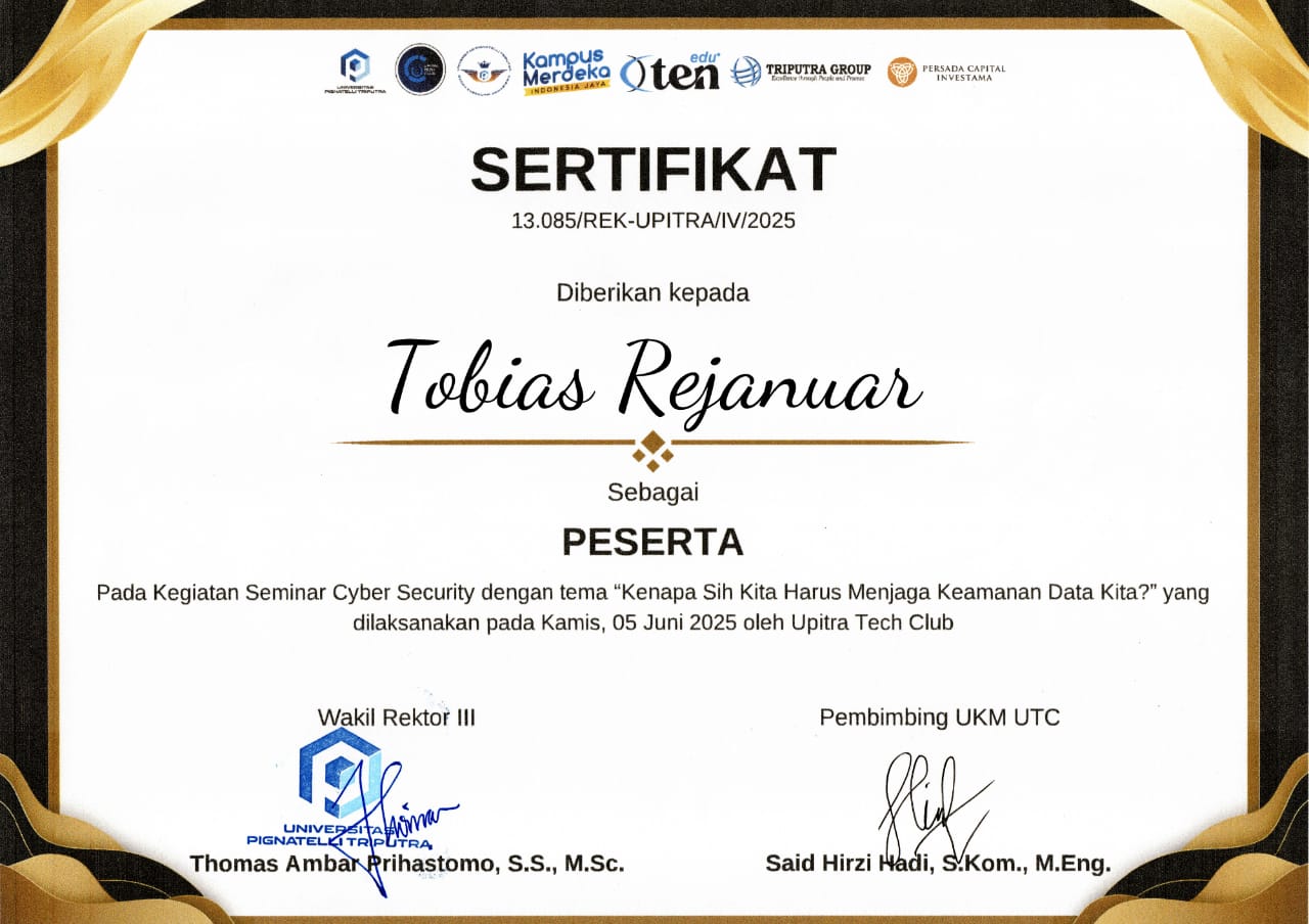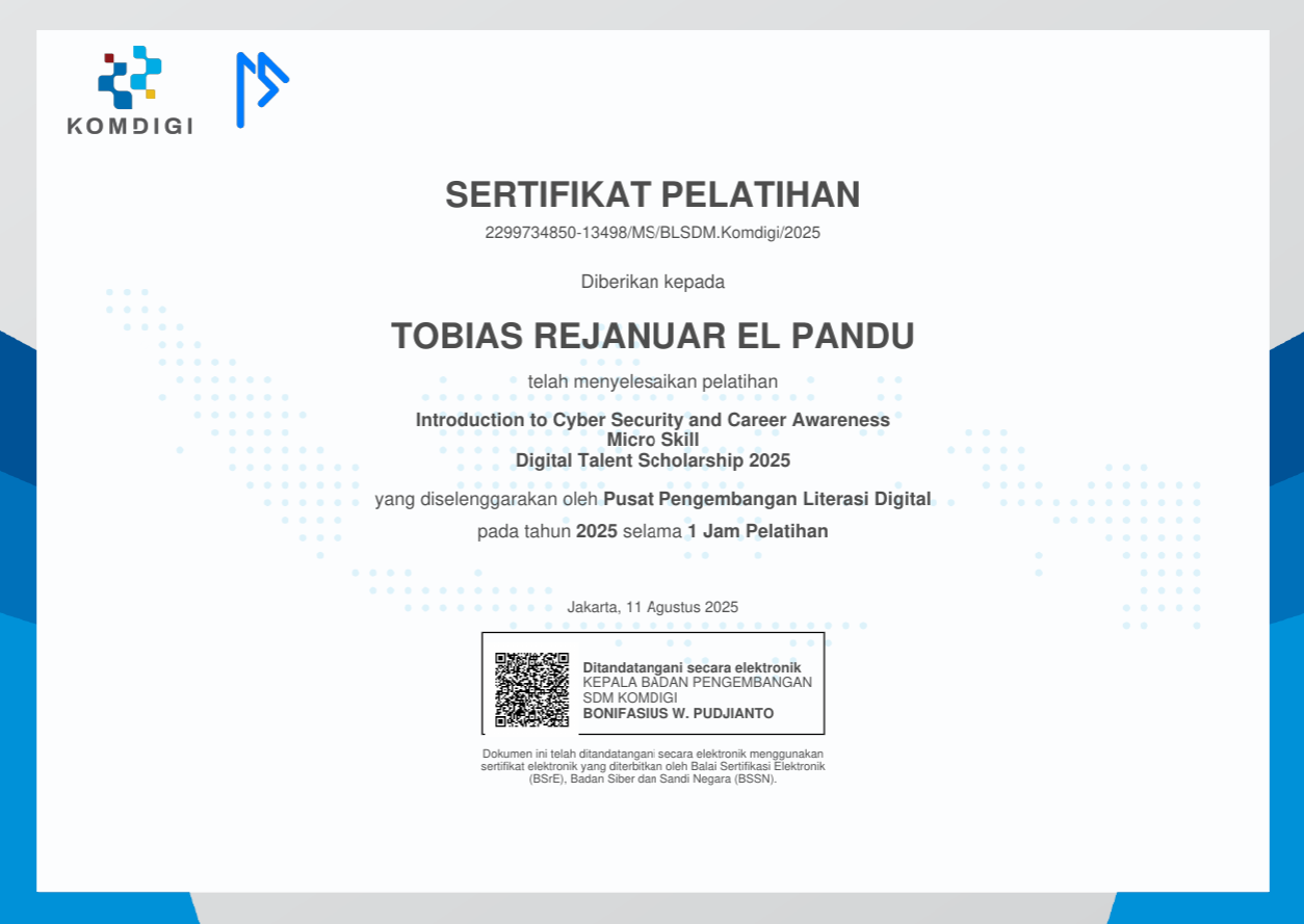 This portfolio showcases my collection of Network Security Awareness Certificates, earned through various cybersecurity-related activities and programs. This site highlights my ongoing learning journey and my commitment to strengthening my knowledge and skills in network security.